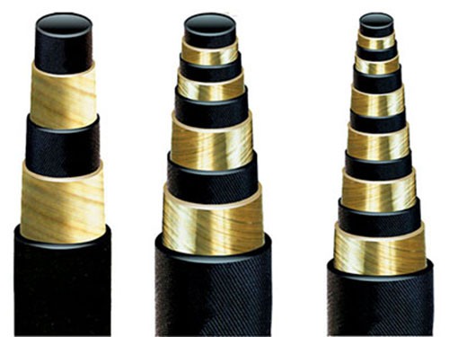 鋼絲編織高壓膠管的構(gòu)造:特種橡膠合成的內(nèi)膠層,一層或多層編織網(wǎng),外膠層合成